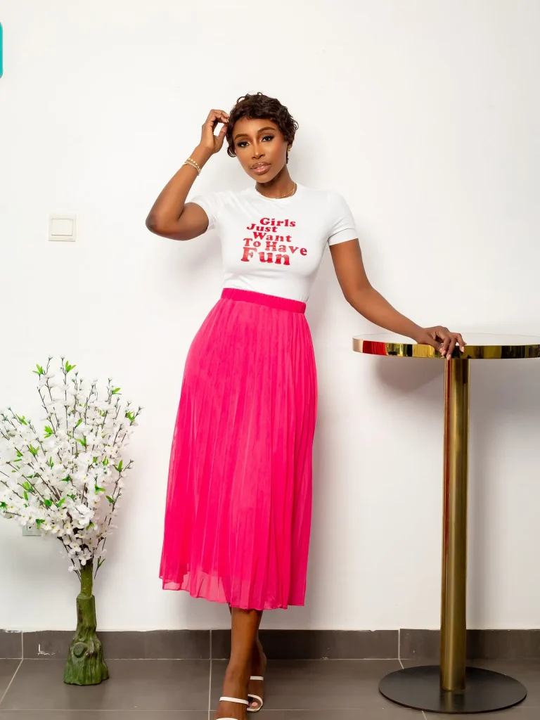 - The Look & Feel: A flowy or structured pleated midi skirt (perhaps in satin, faux leather, or a rich knit) with a tasteful graphic tee.