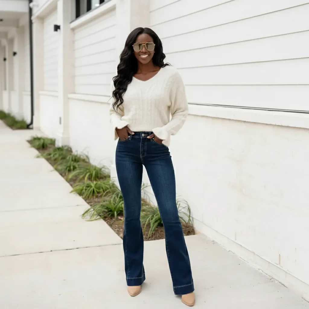 - How to Choose Yours: Ensure jeans have a comfortable stretch. The sweater should be the focal point, so choose one with interesting details, color, or texture.