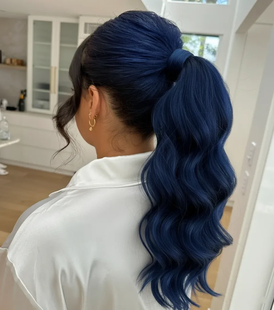 This isn’t just a ponytail; it’s an instant upgrade. Imagine a gorgeous low or high pony, wrapped in a rich, blue velvet ribbon. It’s pure class and so effortlessly chic.