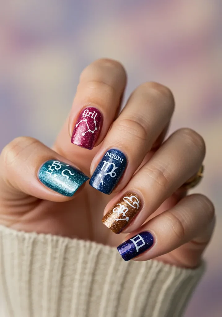 - Nail Shapes: Any shape works. You can add a glitter or chrome top coat to enhance the “gemstone” effect.