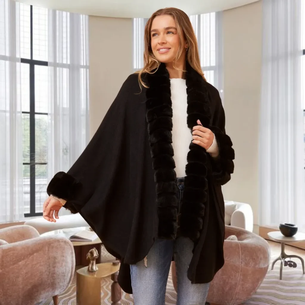 A touch of faux fur—whether a full coat, a chic vest, or a simple collar—adds instant glamour and a sense of old-world opulence.