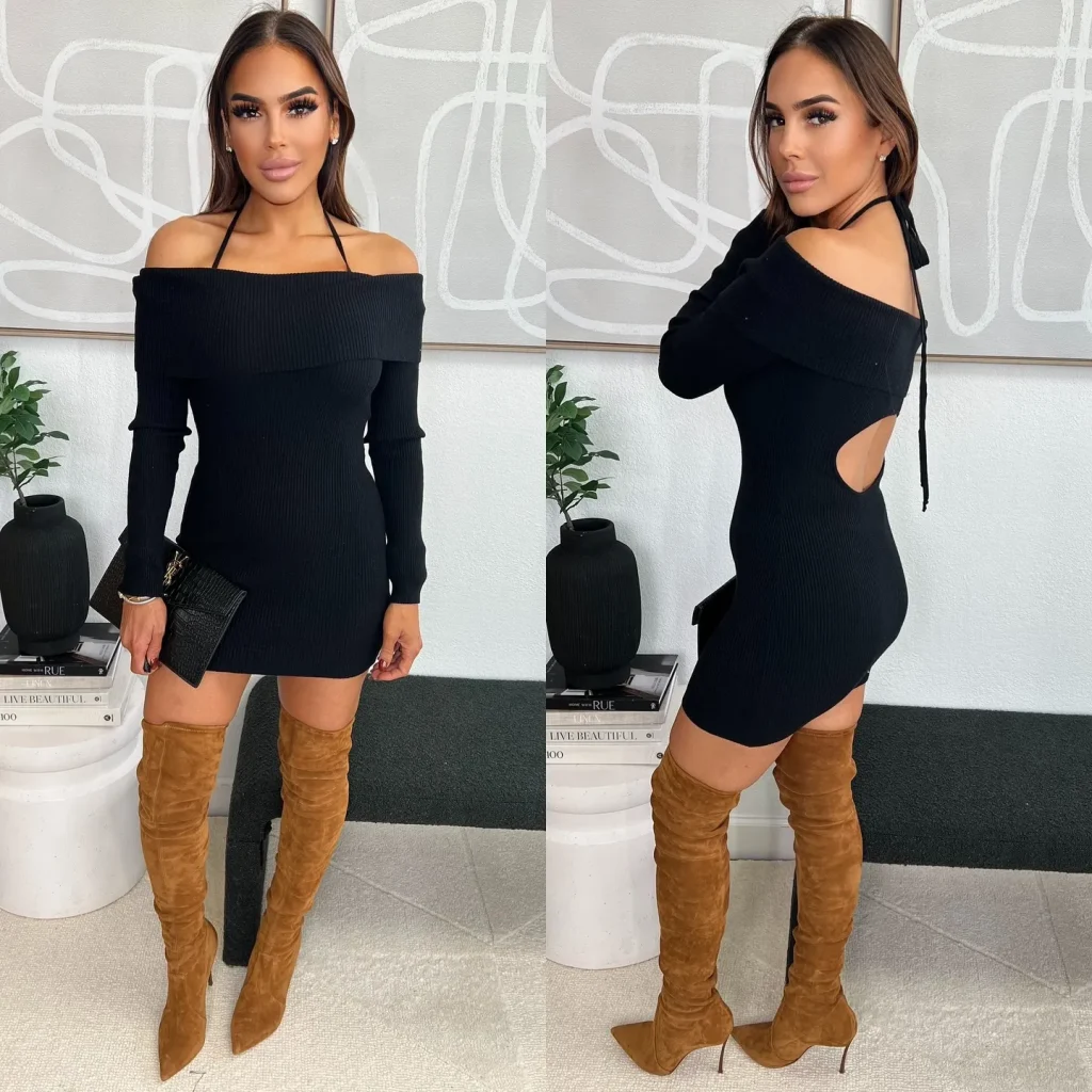 - Why It’s Elegant: It’s a complete, one-piece outfit solution that is both comfortable and body-conscious. The boots create a continuous line, elongating the leg.