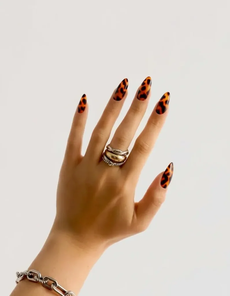 The classic mottled pattern of brown and black. The strategy is to borrow a timeless, luxurious pattern from high-end accessories. It adds depth and intelligence to your manicure.