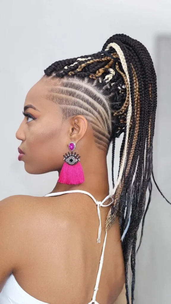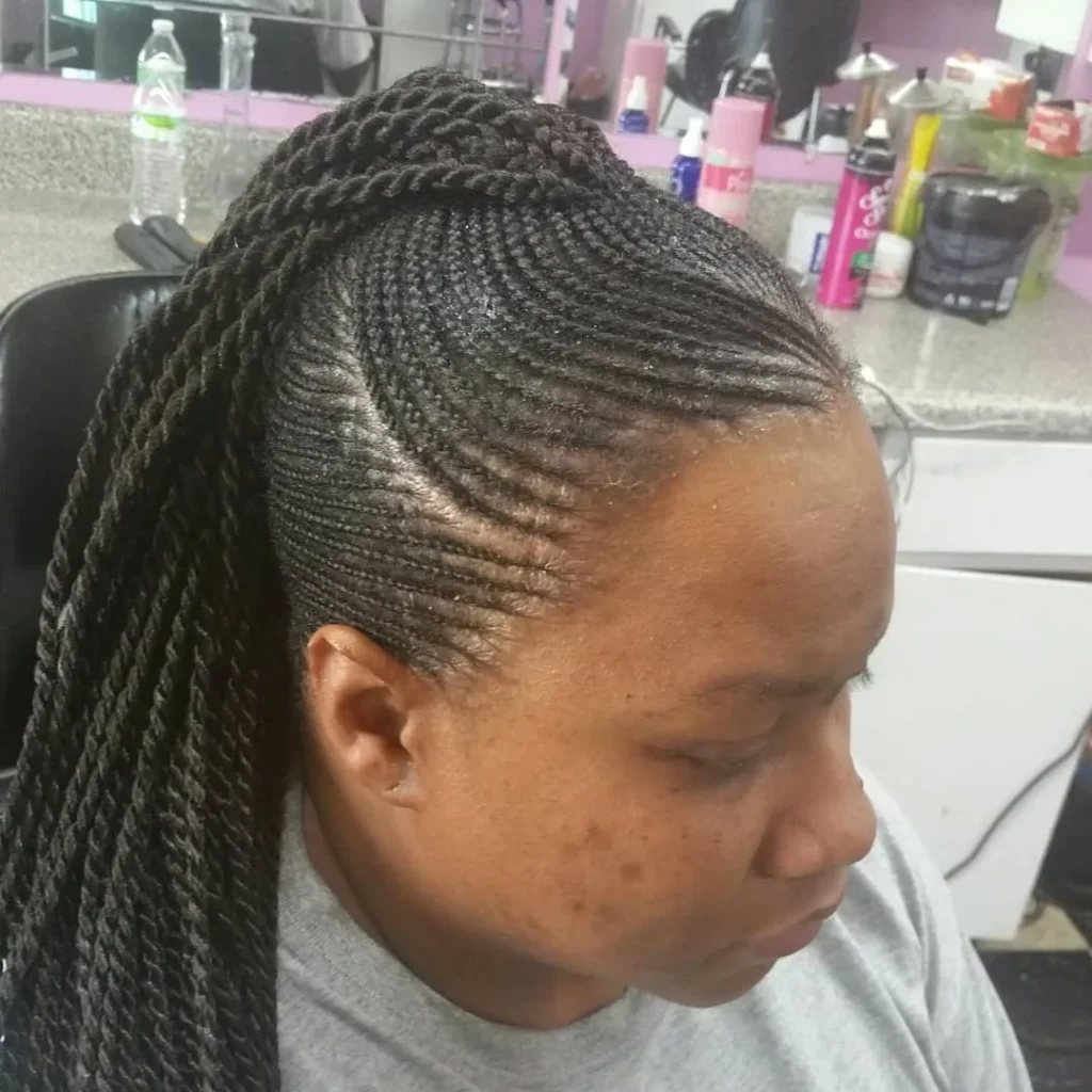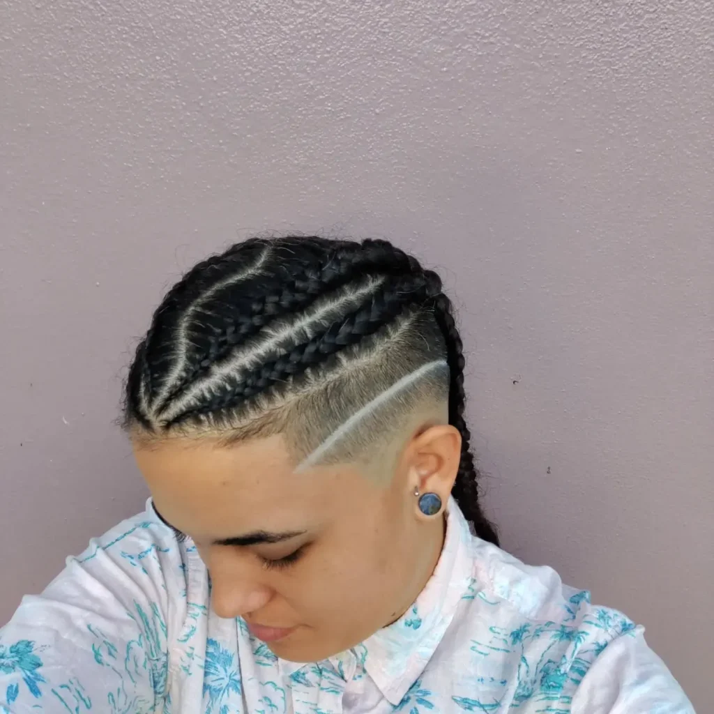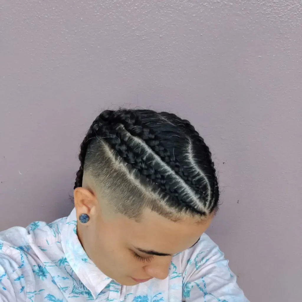 A braided mohawk is a daring and striking look that pairs cornrows with a unique shaved pattern. The combination of intricate braids and the mohawk shape makes this hairstyle ideal for someone who loves a bold look.