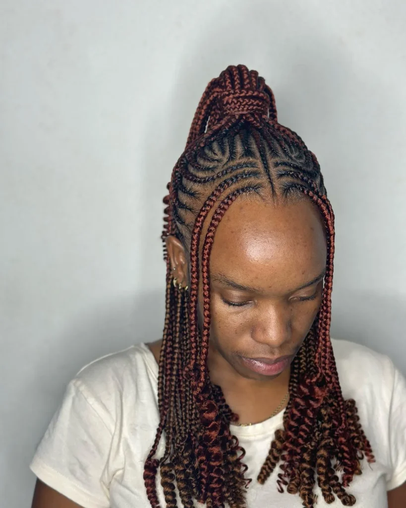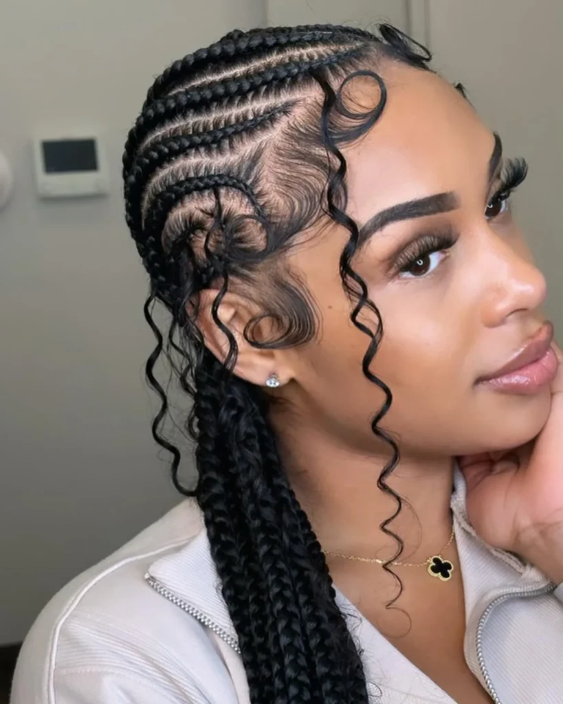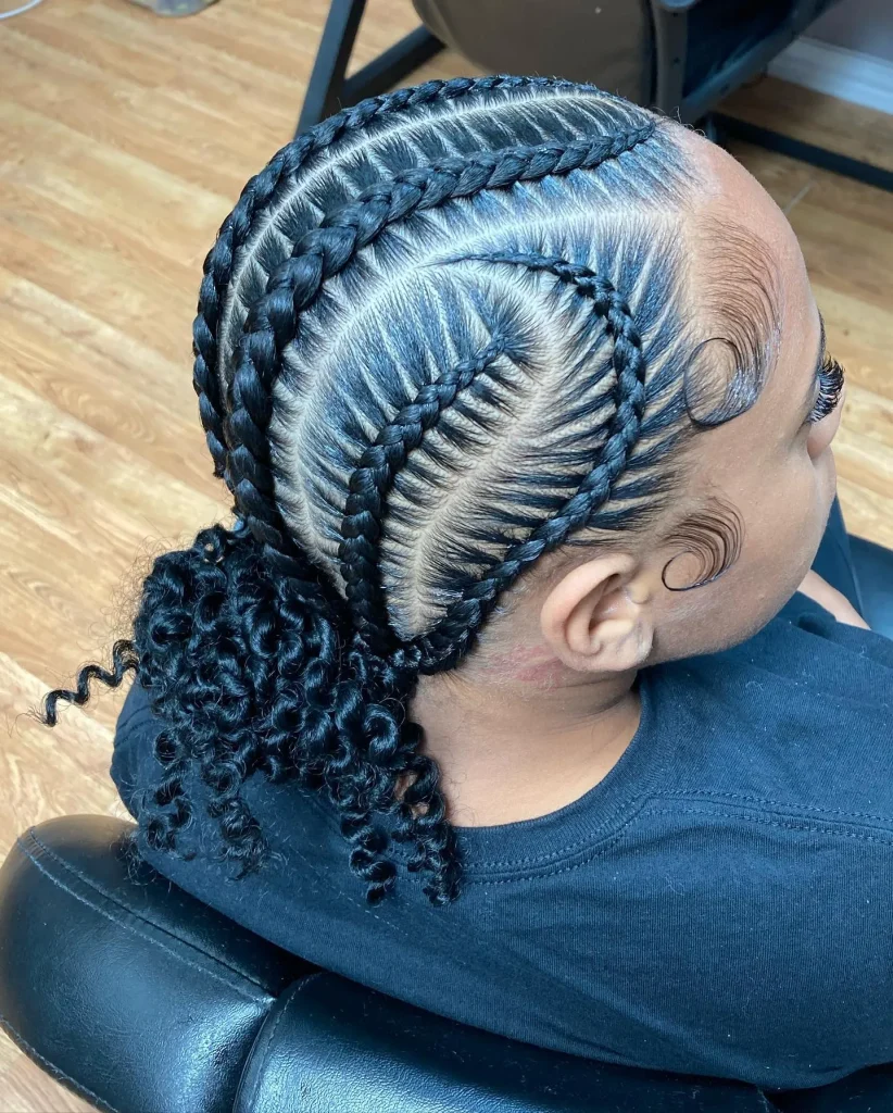 Incorporate curls at the ends of your all-back cornrows for a playful and stylish touch. The contrast between the sleek cornrows and voluminous curls adds an interesting texture to the style.