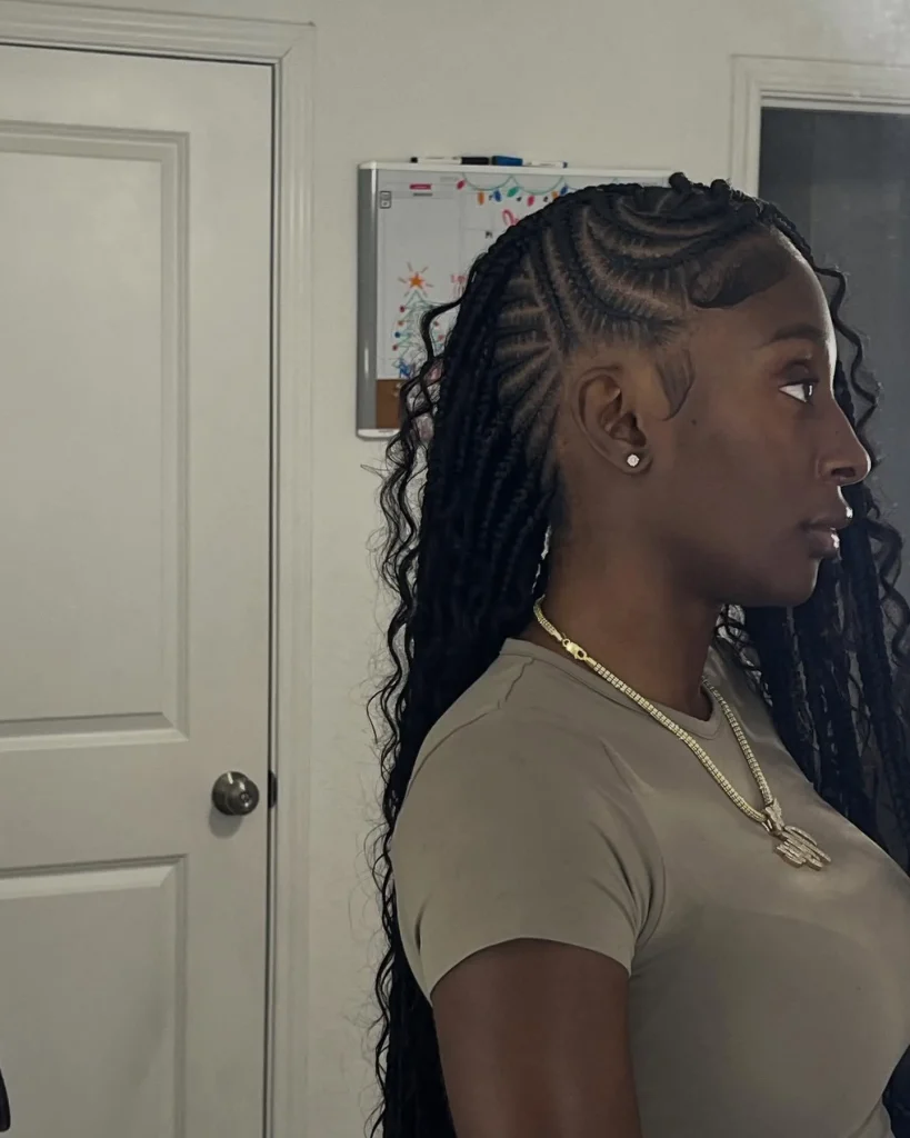 For a bold and fashionable twist, try extending your cornrows with a back fade. The long, flowing braids contrast with the faded sides for a modern, stylish look that’s sure to make a statement.