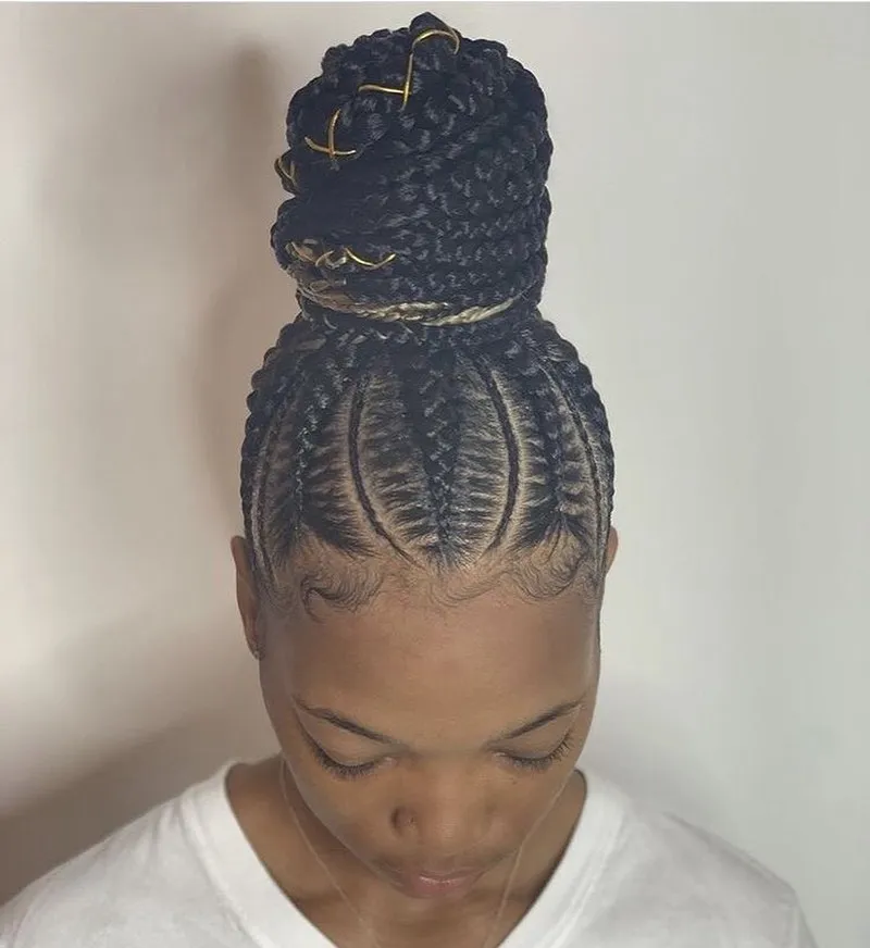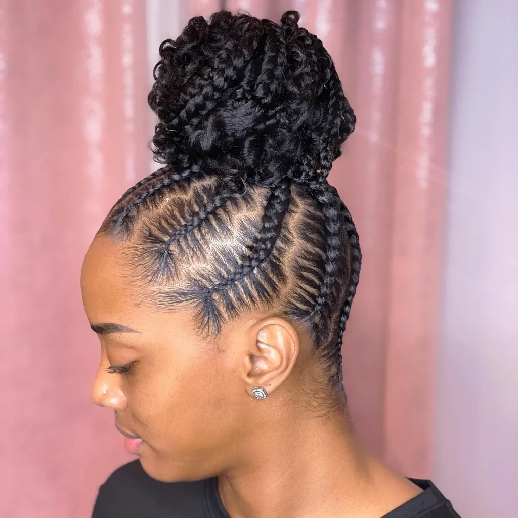 Combine the sophistication of an all-back cornrow style with the elegance of a braided bun. This style is perfect for formal occasions or when you want a polished yet chic look.