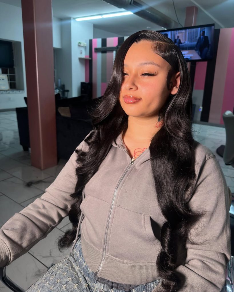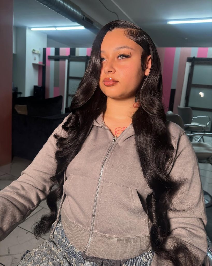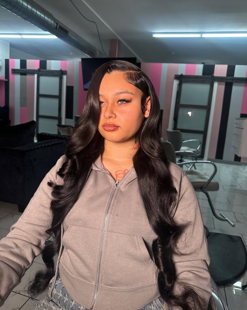 For a more glamorous style, sweep your long hair to one side in loose waves. This creates a red-carpet-worthy look that’s perfect for special events.