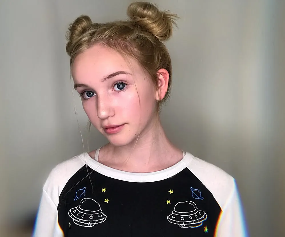 Two buns placed high on the head. They can be messy, sleek, or even braided. It’s a playful, high energy style that doesn’t take itself too seriously.