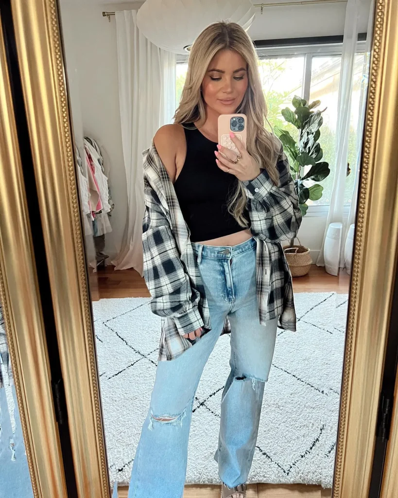 11. Plaid Shirt and Distressed Jeans