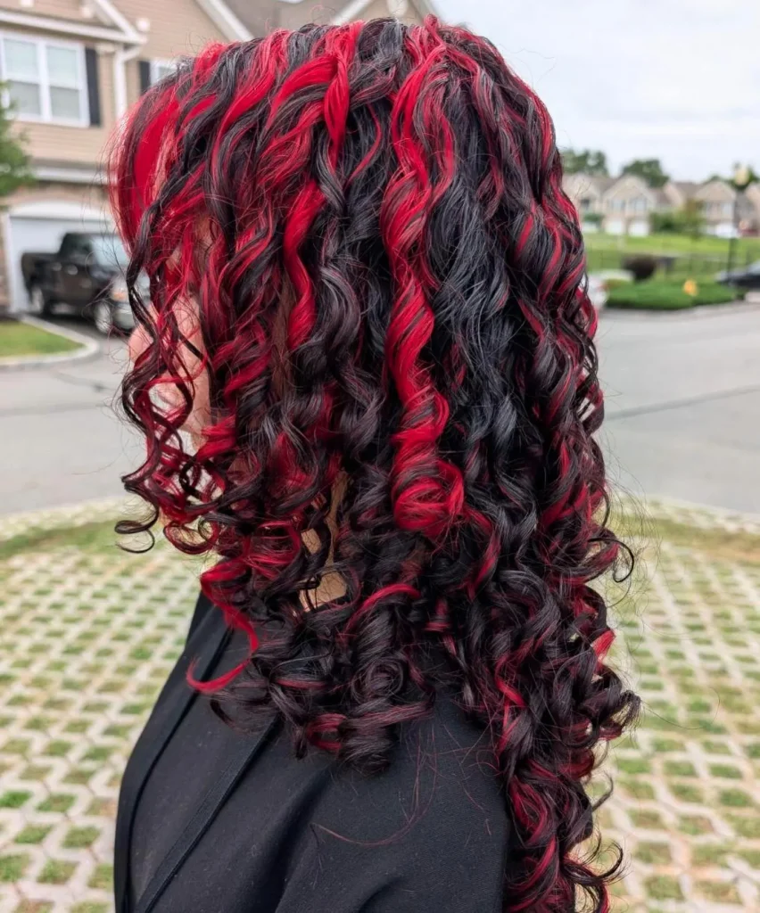 If you have natural curls and you’re looking for a dramatic style, there’s nothing like a fiery red curly mane. Red highlights or full-on color paired with voluminous curls adds a bold statement to your look.