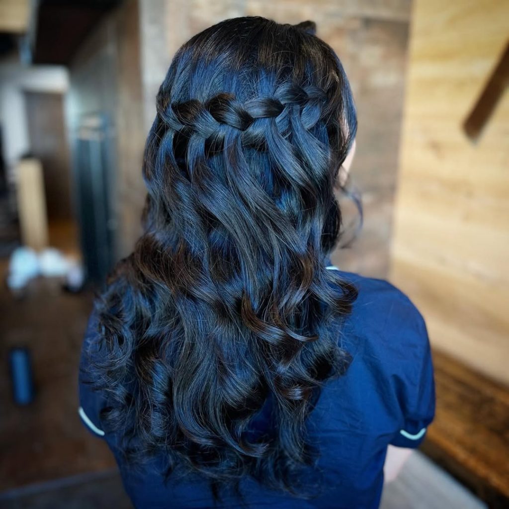 For a soft, cascading effect, the waterfall braid is perfect. It combines loose, flowing hair with intricate braids, creating a romantic, fairy-tale vibe.