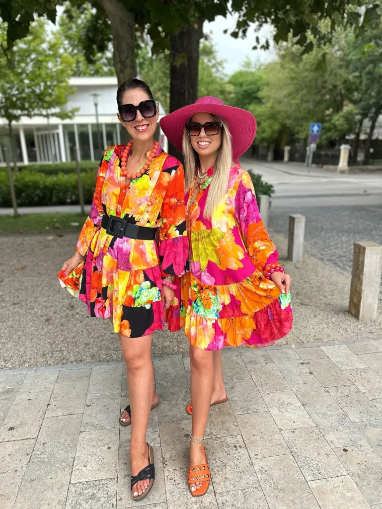 - Maxi dresses with colorful floral prints.