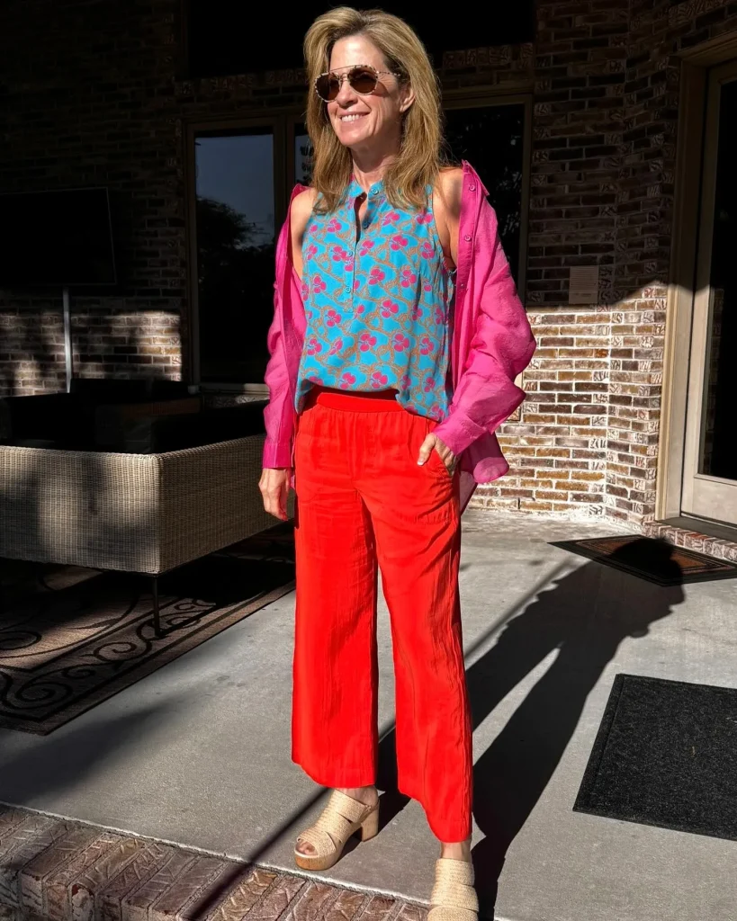 - Neon skirts or colorful palazzo pants.