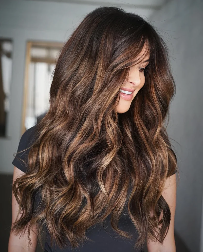 If you are after that soft, lived-in glam, caramel balayage is your go-to. It blends seamlessly with brown hair, giving you a natural, sun-kissed effect.