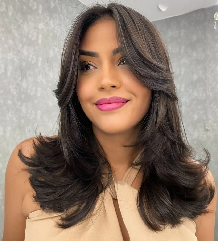 “Feathered ends = soft, romantic, and secretly volume-boosting.” Bonus: It’s super easy to blow-dry and style on the daily.