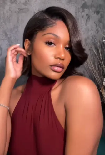 “Chic. Sleek. Boardroom-ready.” This one’s razor-sharp and jawline-accentuating. Pair it with a bold lip and you’re unstoppable.