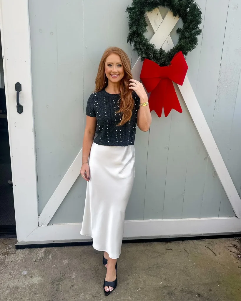 - For a Family Gathering: Silk Midi Skirt + Jewel-Toned Cashmere Sweater + Elegant Heels or Flats + Festive Scarf.