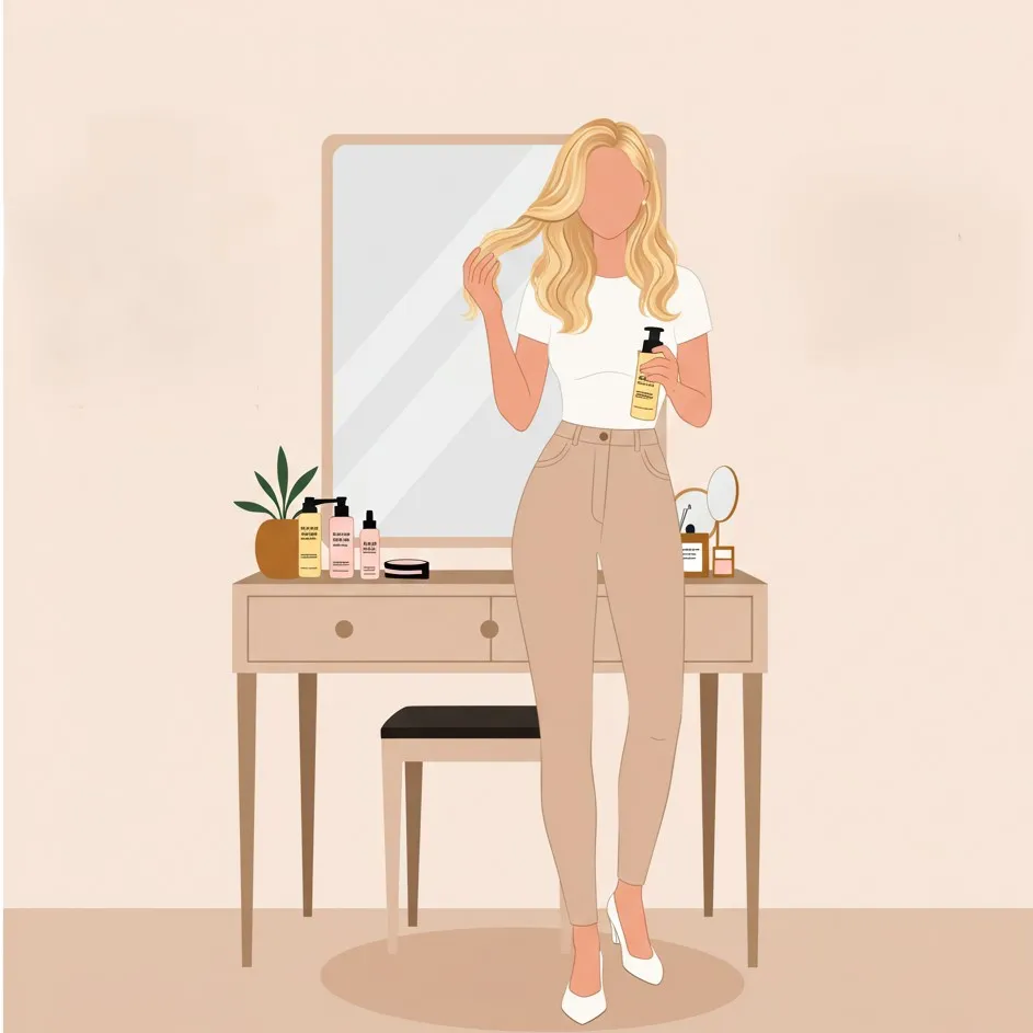 - Apply a shine serum or hair oil to the mid-lengths and ends for added gloss and to tame any flyaways.