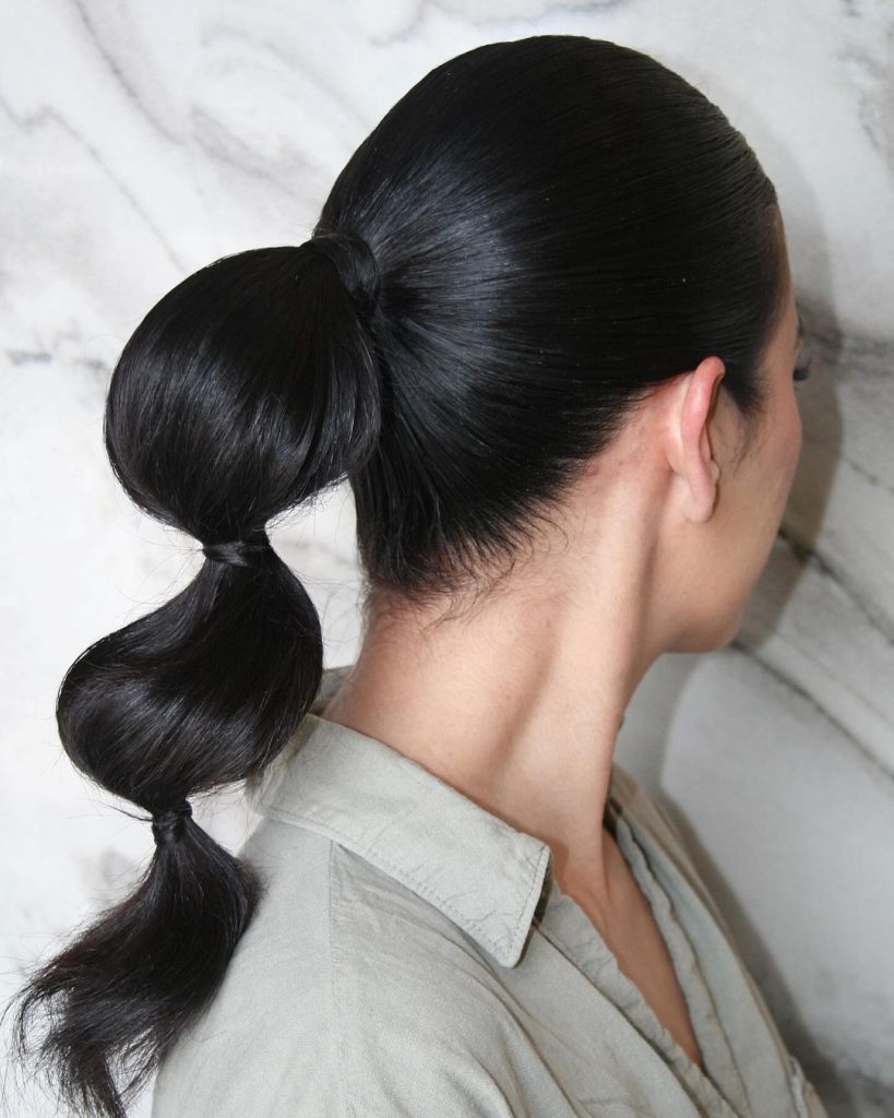 For a fun and trendy look, try a bubble ponytail. Secure your hair in a high ponytail, then add hair ties every few inches down the length. Gently tug on each section to create a bubble effect.