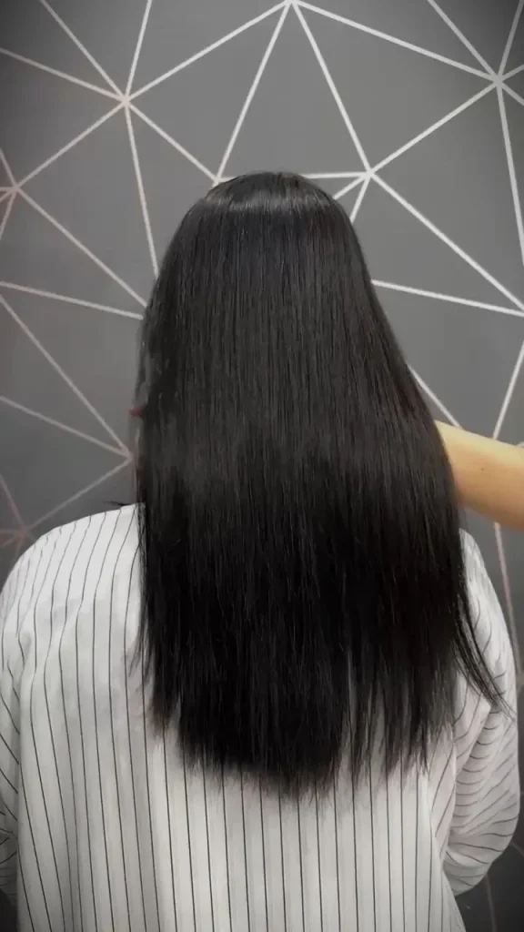 For an ultra-sleek look, straighten your hair using a flat iron. Part your hair in the middle or on the side, and add a touch of serum for a glossy finish.