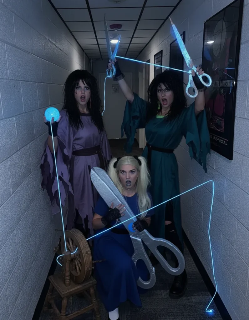 For a darker, more theatrical statement, embody the three ancient Fates who architect the destinies of mortals.