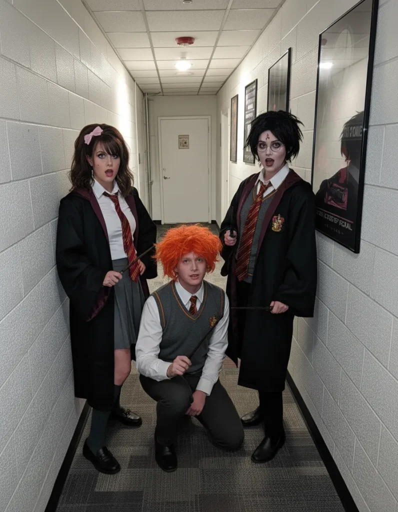 - The Blueprint: Assign the roles based on key identifiers. Harry requires his scar and glasses, Ron his distinct hair color, and Hermione her voluminous hair and an armful of books.