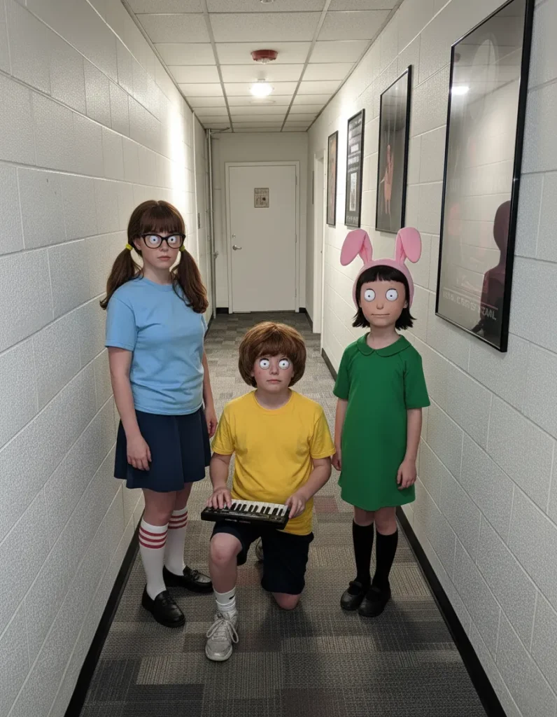- Key Accents: Tina requires her signature awkward posture. Gene can carry a toy keyboard. Louise must have her bunny ears. A prop burger serves as a unifying element for the group.