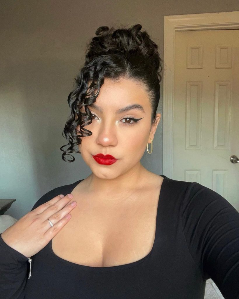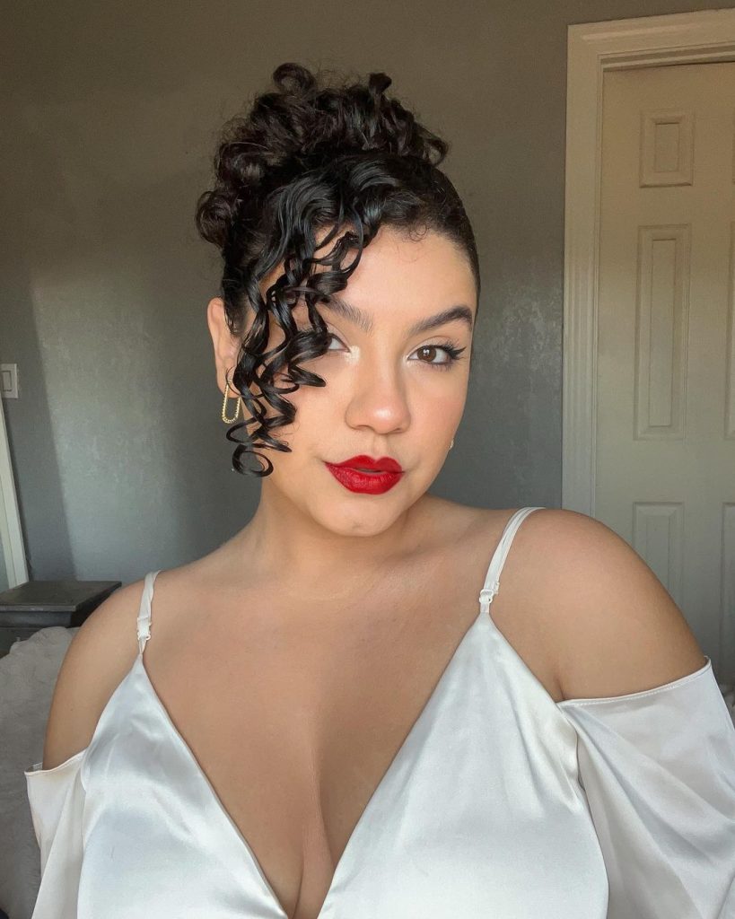 For a romantic and soft look, try sweeping your curls to one side. It’s a perfect option for a night out or a formal event.