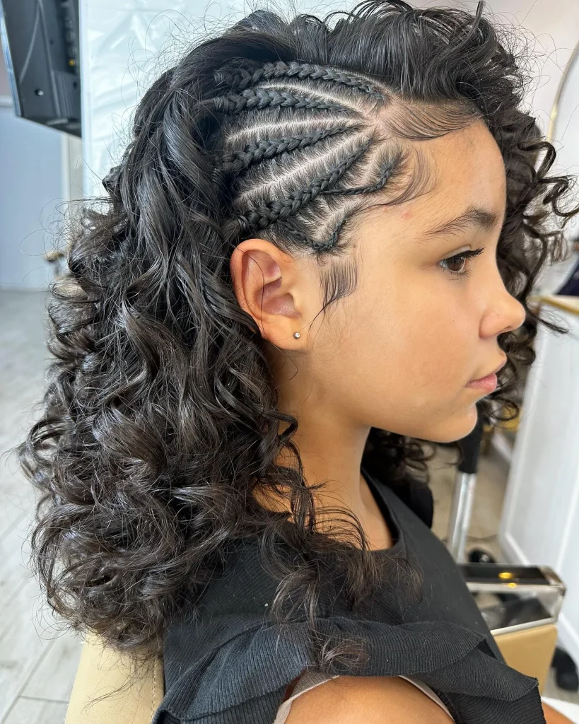 Combine a side braid with your curly hair for a unique and bohemian look. It’s perfect for music festivals, casual days, or beach outings.