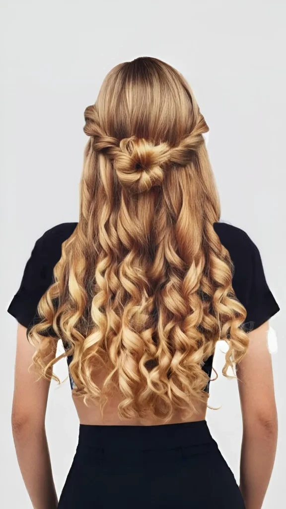 A half-up bun paired with loose curls creates an effortlessly chic look. It’s ideal for those who want to keep their hair out of their face while showcasing their curls.