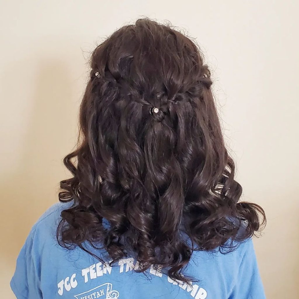 Combine braids with your curls by creating a waterfall braid. This look is perfect for adding a bit of elegance to your curly hairstyle.