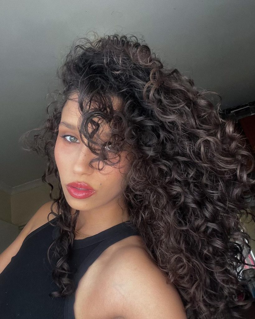 Add layers to your curly hair for a fun, edgy shag. The voluminous curls create a playful, carefree vibe that’s great for any occasion.
