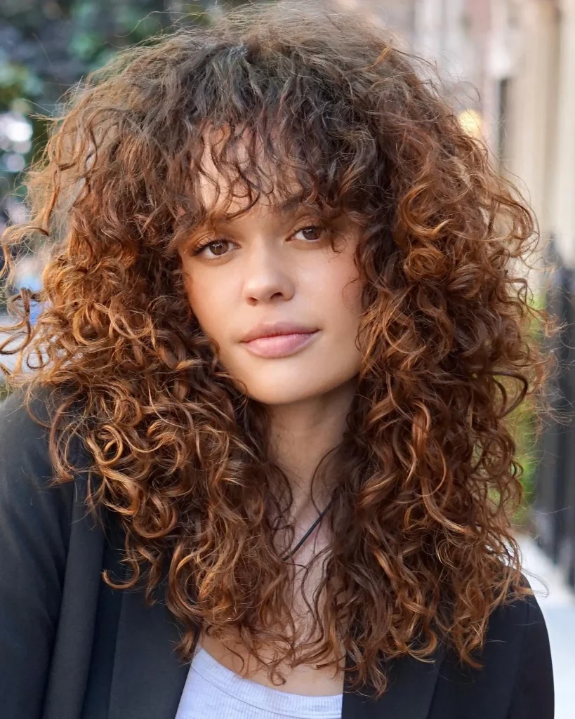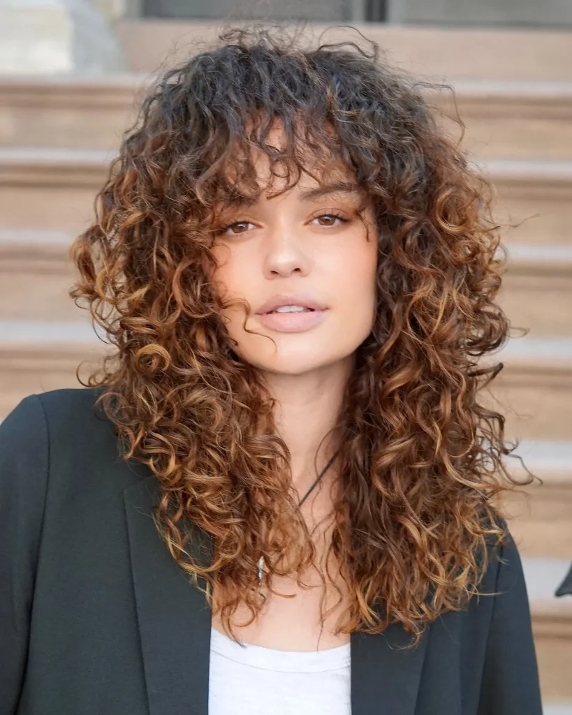 Curly bangs add a youthful and trendy twist to your curly hairstyle. Whether you pair them with a bob, lob, or long curls, this look gives a fresh, modern appeal.