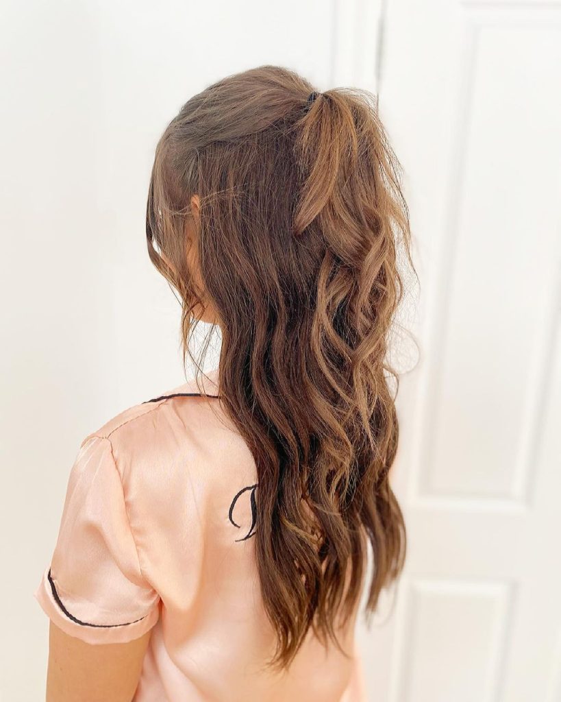 The half-up half-down style is versatile and super easy to create. Simply pull the top half of your hair into a small ponytail or bun and leave the rest of your hair down for a balanced and cute look.
