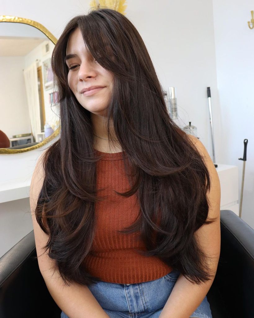 Straight bangs paired with loose hair create a cute, youthful look. Whether you have long or short hair, adding bangs can frame your face and make the style appear effortlessly chic.