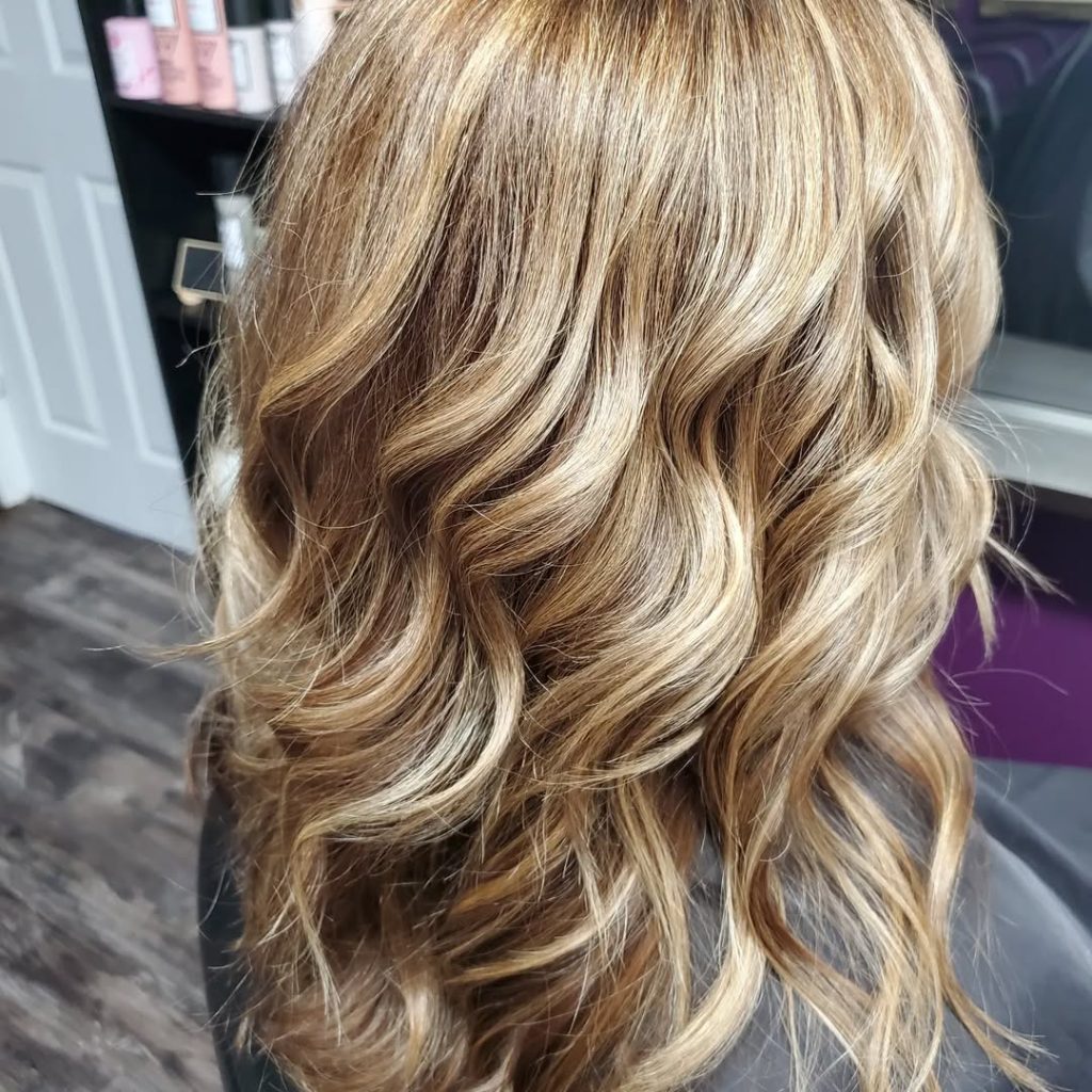 - Curl your hair loosely with a curling iron and brush through for soft waves.