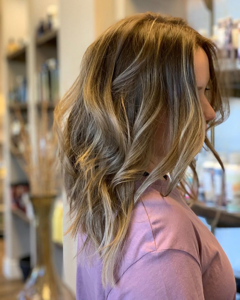 The textured lob (long bob) is one of the trendiest styles right now. Its choppy, layered texture gives off a cool, casual vibe.