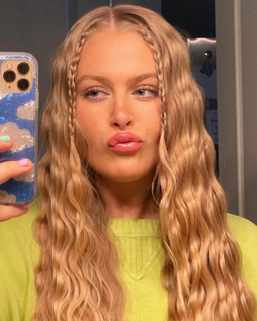 Two small, thin braids that frame the face. This isn’t a full hairstyle. It’s a detail. A small, intentional touch that adds a bit of a bohemian, relaxed feel.