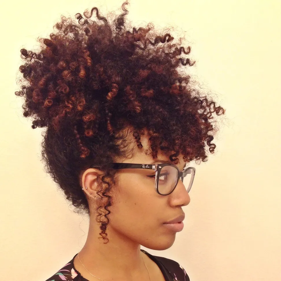 A very high, loose ponytail placed at the top of the head, allowing curls to cascade forward and around the face. It’s a functional style that has become an iconic look in its own right.