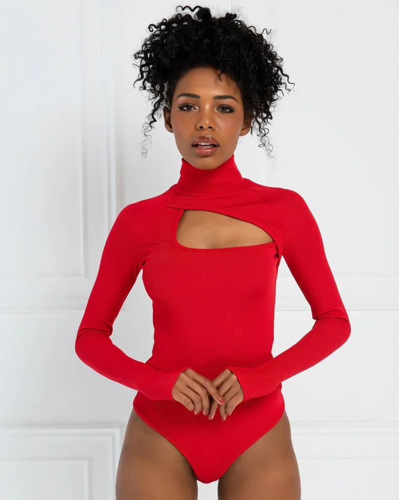 For a perfectly smooth, tucked-in look with no bunching, a turtleneck bodysuit is an elegant and practical base layer.