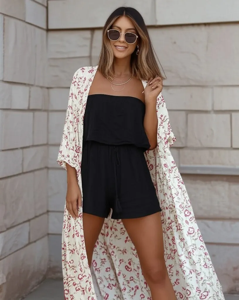 18. Strapless Romper + Kimono – Festival Feels Without the Fuss