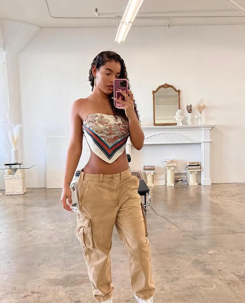 8. Bandana Top + Cargo Pants – The Cool Girl Contrast