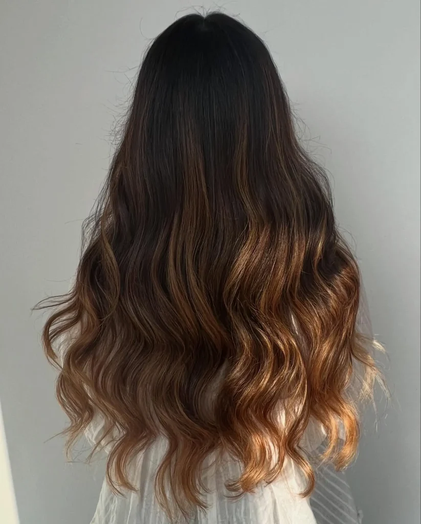 A bronzy brunette shade that mimics a summer sunset warm, radiant, and totally Instagram-worthy.