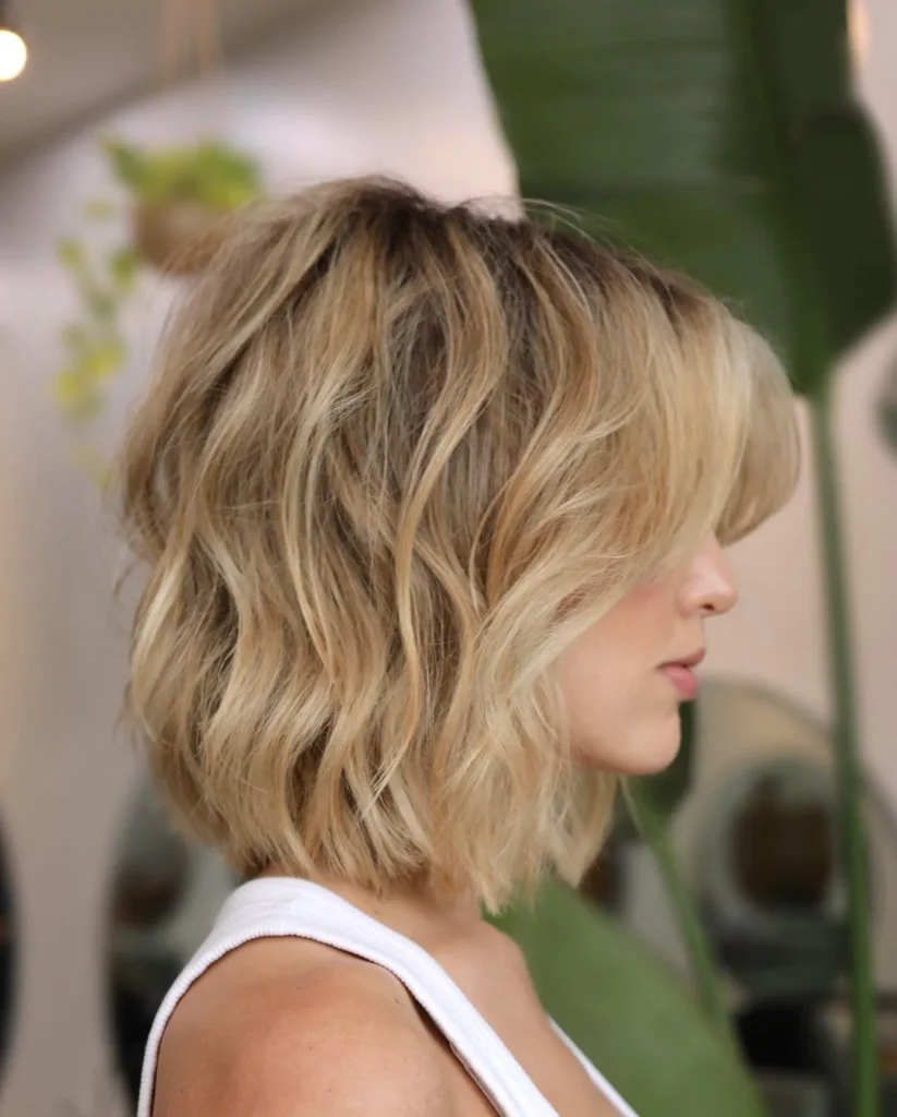 Embracing the natural texture or adding waves/bends to a lob (long bob) or bob haircut. This style is modern, chic, and perfectly showcases a shorter cut.