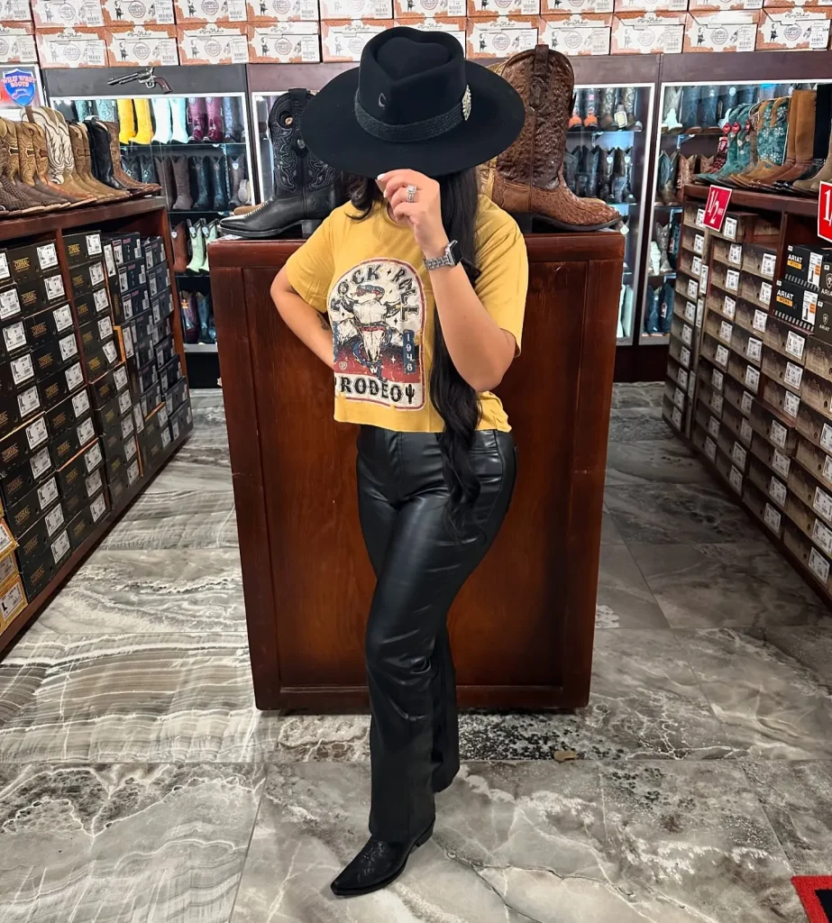 Style yours with leather pants and strappy heels for a look that’s bold and sexy. Add hoop earrings and red lips and you’re ready to slay.