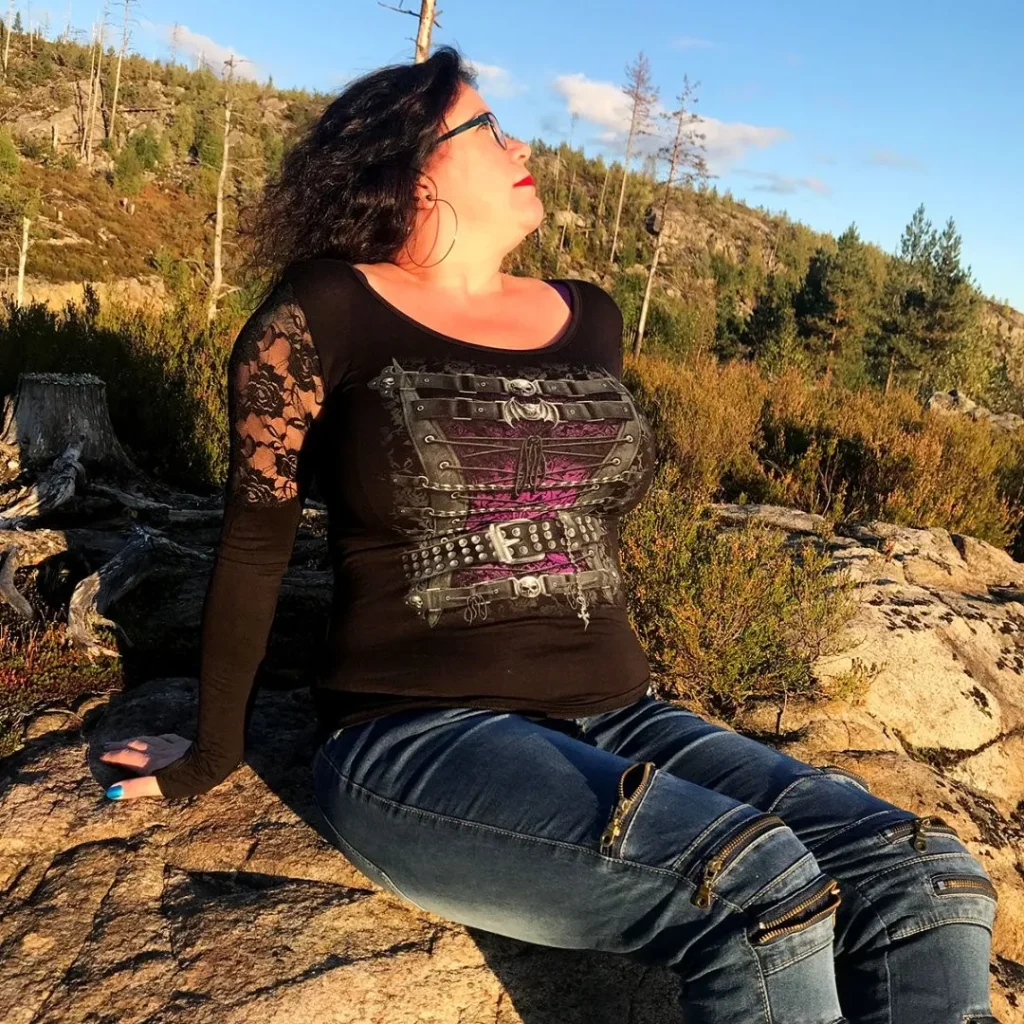 Wear a corset over your graphic tee for that nostalgic, edgy twist. Pair with low-rise jeans or skirts and hoop earrings for full-on nostalgia mode.