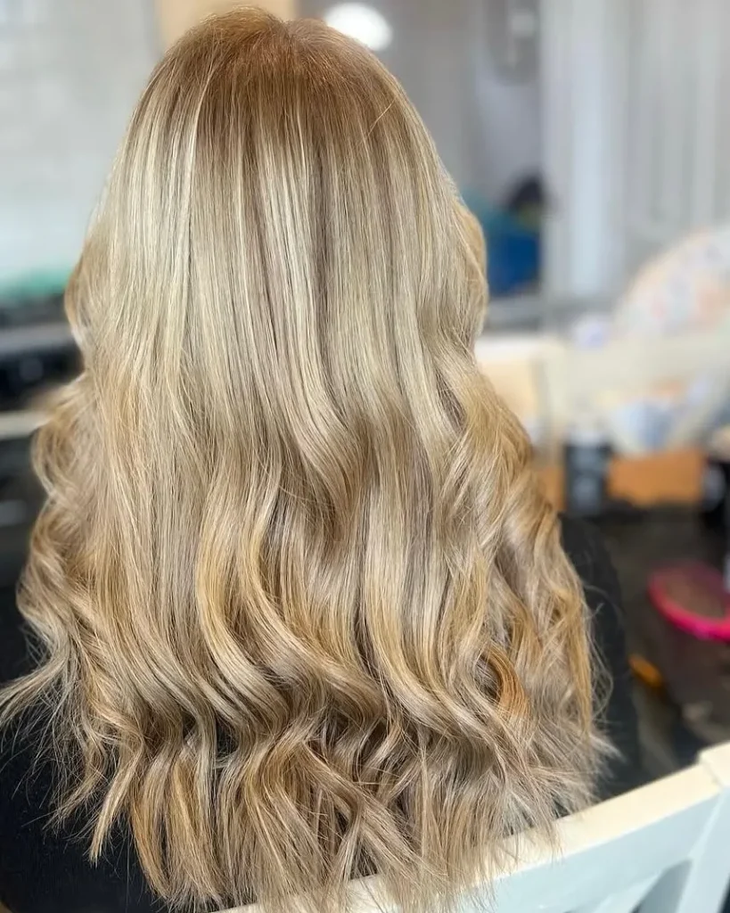 Long, layered waves are perfect for adding volume and body to your hair. The soft layers frame the face, while the waves create a relaxed, beachy look that’s both youthful and timeless.