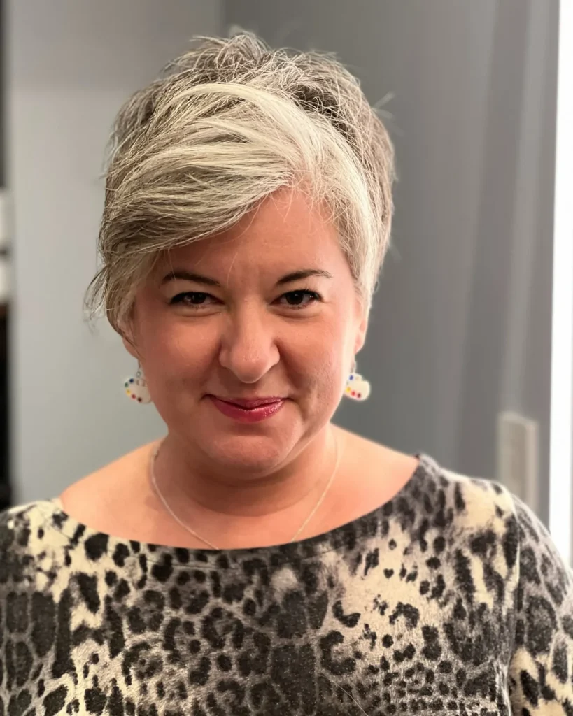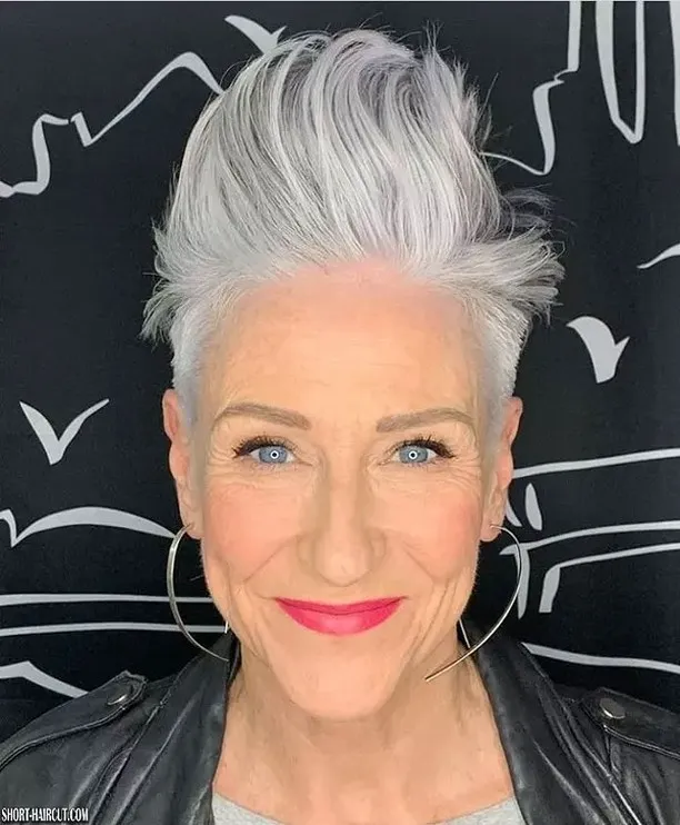 A sleek, slicked-back pixie is a sophisticated and edgy style that’s perfect for older women looking for a bold, modern look. It’s chic and versatile, great for both casual and formal events.