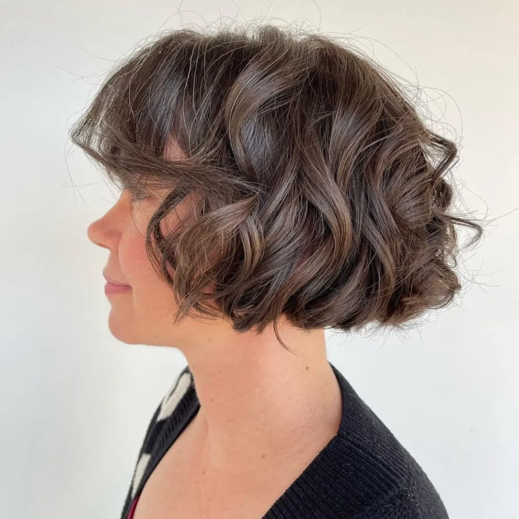 A wavy bob with highlights can add a modern, sun-kissed effect. It’s an easy-to-style look that’s both chic and youthful, perfect for women who want to add some movement and texture to their hair.